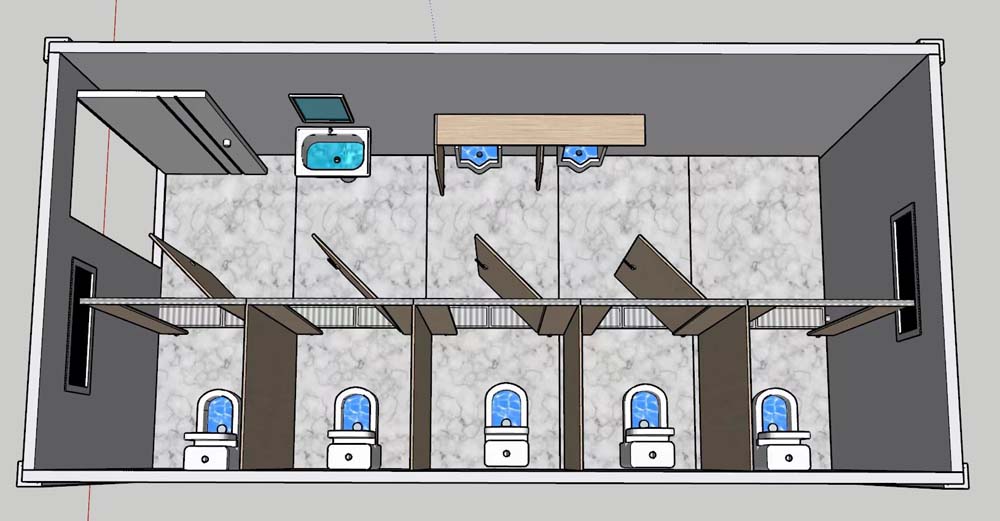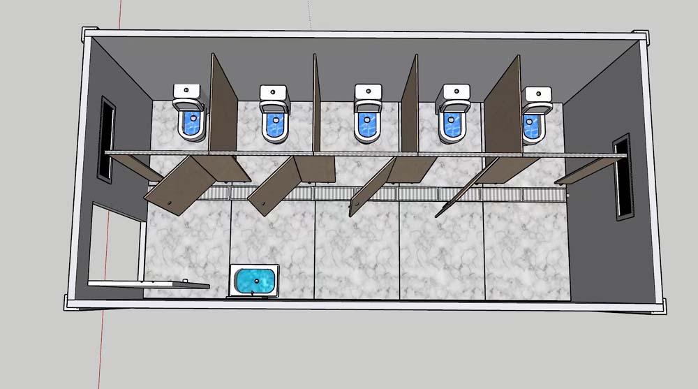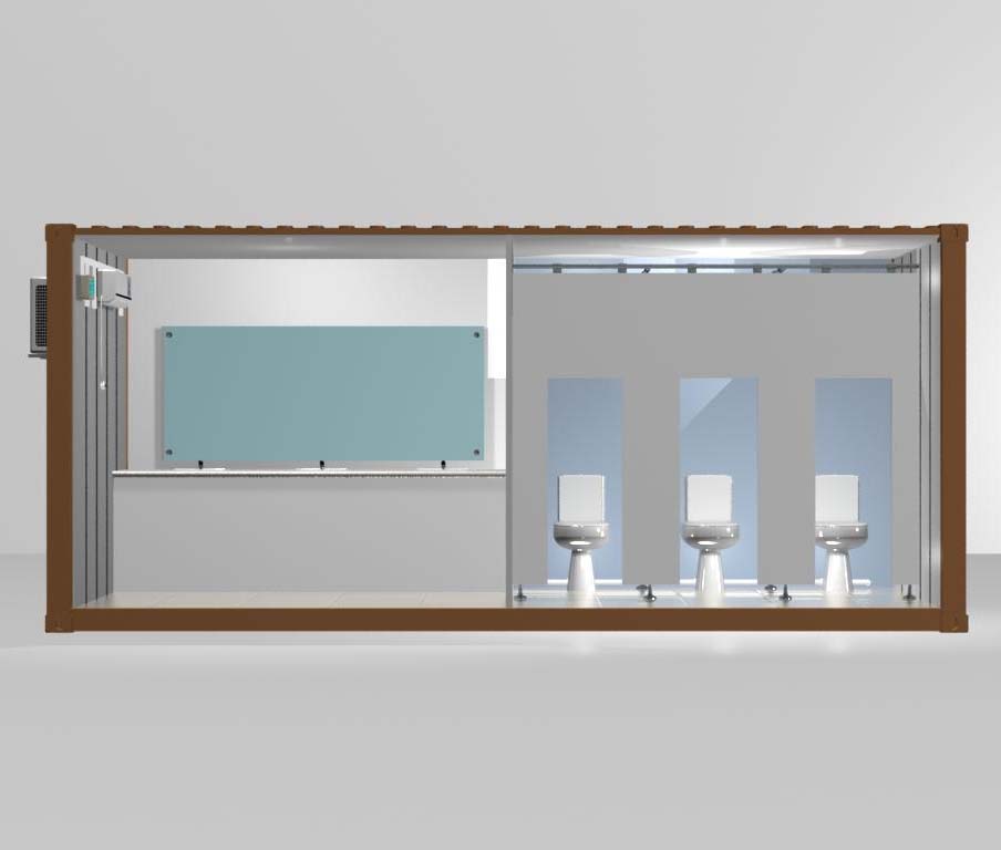 Modular bathroom & shower container is also called ablution unit or shower block, a complete self-contained bathroom unit, which is preassembled off-site complete with finishes, sanitary wares, concealed pipes, conduits, ceiling and bathroom cabinets, before it is delivered and installed on-site. We supply portable toilets and shower units that comply with international standards. These units are factory-built using certified quality materials, pre-fitted with toilets, sinks, and shower heads, then delivered directly to construction sites. We manufacture portable toilet and shower facilities in a range of configurations, all produced in line with international quality standards. These units are suitable for diverse settings including public areas, construction sites, mines, oil fields, international trade fairs, parks, gardens, sports facilities, tourism sites, and road construction projects.