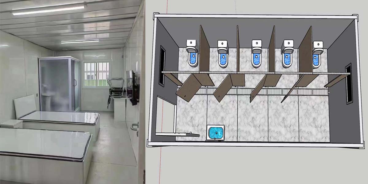 A single standalone modular domitory container offers two standard sizes: 18 Sq.m (3x6m) and 15 Sq.m (2.5x6m), with flexible expansion possible laterally and vertically to meet custom client demands. Beyond basic workspace, it can be fully configured with functional zones including dedicated passages for smooth circulation, well-equipped meeting rooms for collaboration, mixed public and private working areas (balancing teamwork and focus), secure lock rooms for personal items, practical storage spaces for supplies, and convenient washing rooms—creating a comprehensive, turnkey office solution tailored to diverse operational needs.